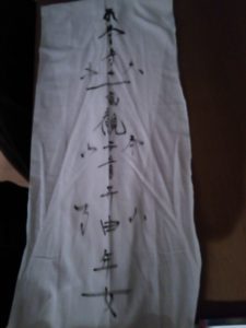 腹帯には干支などが墨で書いてありました。その他にも難解な文字が書いてあり、祈願された帯という感じ。